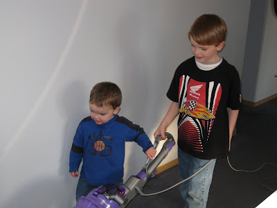 Seems we must have the cleanest carpet in the neighborhood, we've now vacuumed three times today, I did once this morning and Cale did this afternoon and now he and Brock are going at it again. I think we all get grossed out every time we empty the canister to see how much dog hair, etc. is in our carpets. Hey at least I have kids that like to help do it I guess, one interesting little thing Don pointed out was that our furnace filter doesn't have to be changed as often lately because of the new vacuum, the idea of that kind of grosses me out and excites me at the same time. Who doesn't love a little cleaner air to breath? Let me add our carpets aren't in need of vacuuming this often but we've grown so used to having them freshly done that it's almost an obsession now!